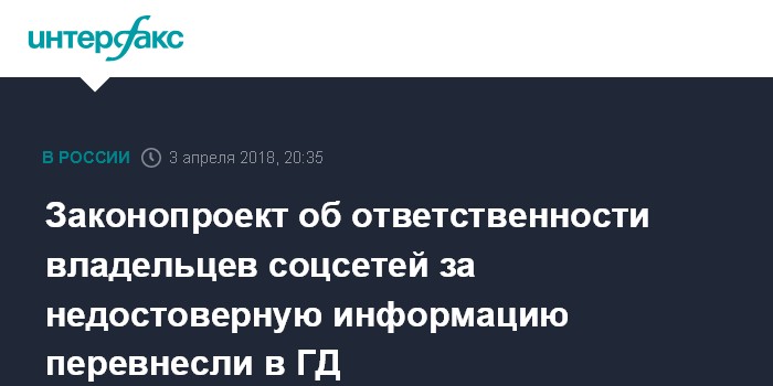 Законопроект об ответственности владельцев соцсетей за недостоверную информацию перевнесли в ГД