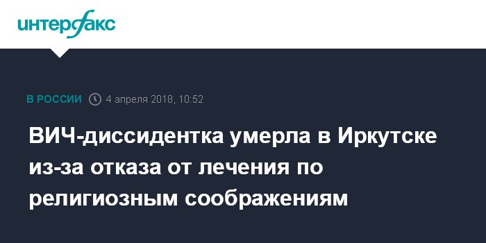 ВИЧ-диссидентка умерла в Иркутске из-за отказа от лечения по религиозным соображениям