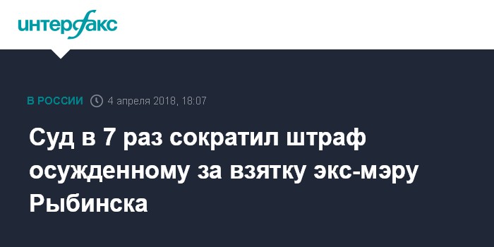Суд в 7 раз сократил штраф осужденному за взятку экс-мэру Рыбинска