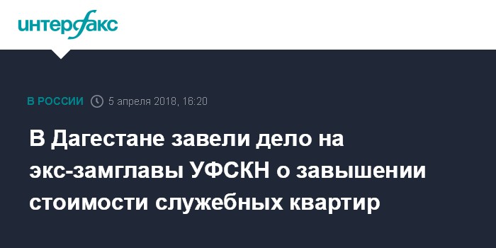 Москва. 5 апреля. INTERFAX.RU - Уголовное дело возбуждено в отношении бывшего заместителя начальника УФСКН России по Республике Дагестан по подозрению в завышении стоимости принятых на баланс 22 служебных квартир, сообщила "Интерфаксу" официальный представитель МВД России Ирина Волк.