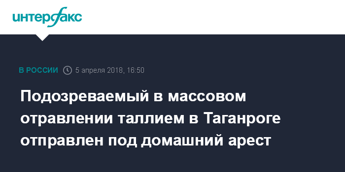 Подозреваемый в массовом отравлении таллием в Таганроге отправлен под домашний арест