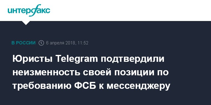Юристы Telegram подтвердили неизменность своей позиции по требованию ФСБ к мессенджеру