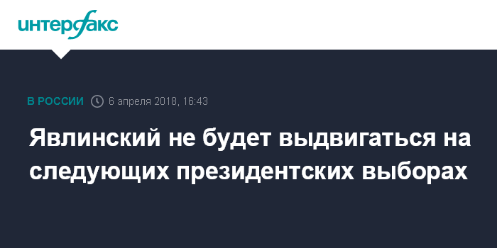 Москва. 6 апреля. INTERFAX.RU - Председатель федерального политкомитета "Яблока" Григорий Явлинский заявил, что не намерен принимать участие в следующих выборах президента РФ.