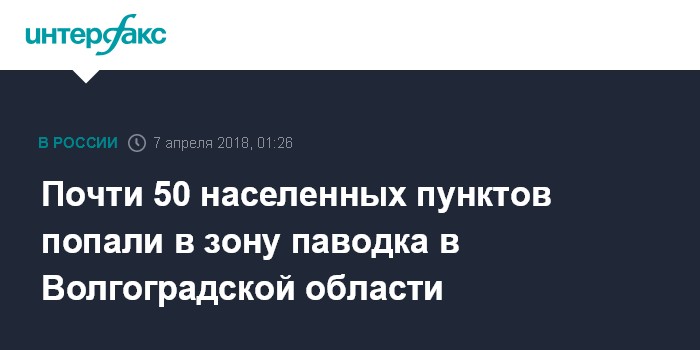 Москва. 7 апреля. INTERFAX.RU - Число населенных пунктов в Волгоградской области, подтопленных в результате паводка, увеличилось с 44 до 47, сообщил руководитель пресс-службы регионального управления МЧС Дмитрий Уланов.