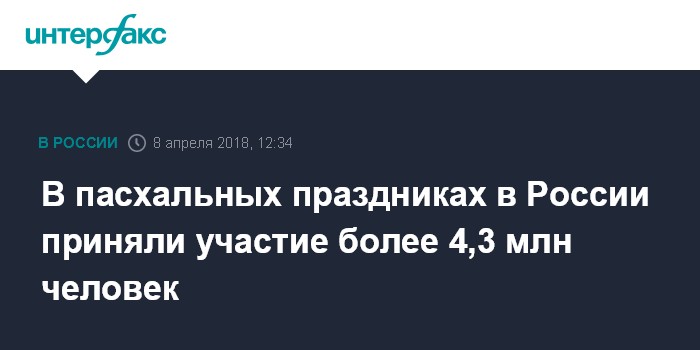 В пасхальных праздниках в России приняли участие более 4,3 млн человек