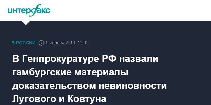 В Генпрокуратуре РФ назвали гамбургские материалы доказательством невиновности Лугового и Ковтуна
