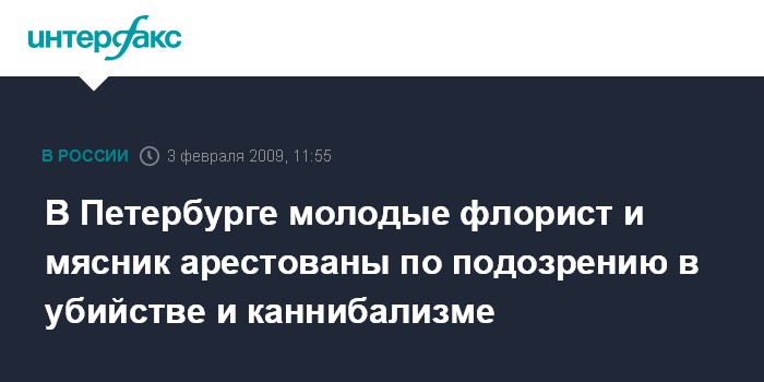 В Петербурге молодые флорист и мясник арестованы по подозрению в убийстве и каннибализме