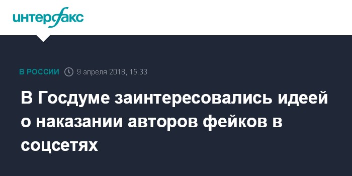 Москва. 9 апреля. INTERFAX.RU - В Госдуме не исключают, что понадобится вводить административную или уголовную ответственность персонально для тех, кто публикует в соцсетях фейковые новости, а не только для владельцев этих соцсетей.