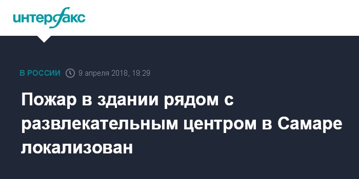 Москва. 9 апреля. INTERFAX.RU - Пожарные подразделения локализовали возгорание в здании рядом с культурно-развлекательным центром в Самаре.