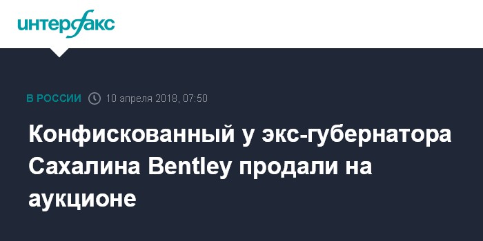 Конфискованный у экс-губернатора Сахалина Bentley продали на аукционе