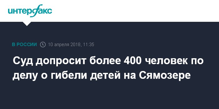 Москва. 10 апреля. INTERFAX.RU - Петрозаводский городской суд планирует допросить более 400 свидетелей, экспертов, потерпевших и их представителей по делу о гибели 14 детей на Сямозере летом 2016 года.