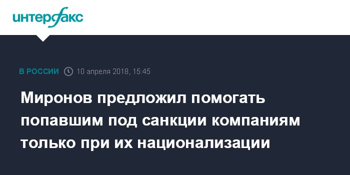 "Это будет предложение нашей партии: если каким-то компаниям деньги и давать, думая о производстве, думая о работающих там людях, (то делать это) при одном условии - национализация. Вот если мы национализируем, то можно давать деньги", - сказал Миронов журналистам во вторник.