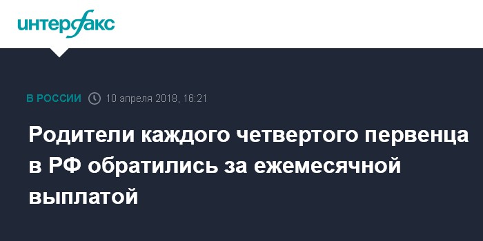 Родители каждого четвертого первенца в РФ обратились за ежемесячной выплатой