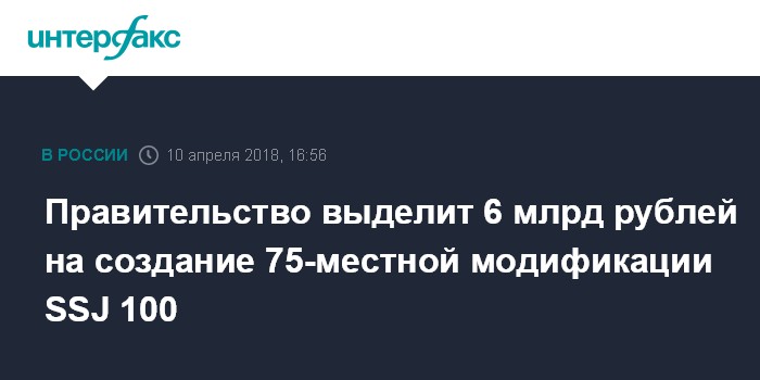 Правительство выделит 6 млрд рублей на создание 75-местной модификации SSJ 100