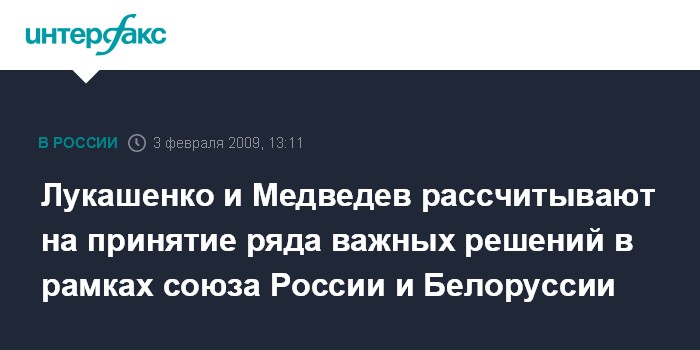 Лукашенко и Медведев рассчитывают на принятие ряда важных решений в рамках союза России и Белоруссии