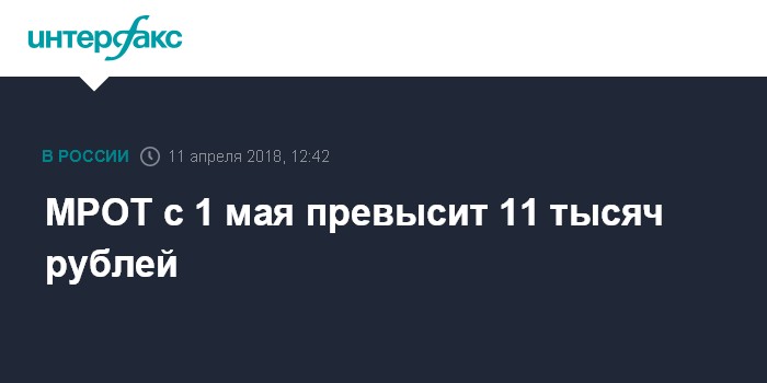 МРОТ с 1 мая превысит 11 тысяч рублей