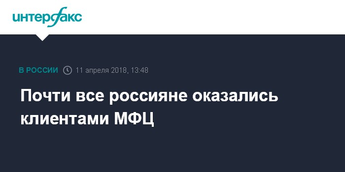 Москва. 11 апреля. INTERFAX.RU - На 1 января 2018 года услугами многофункциональных центров (МФЦ) было охвачено 96% населения страны, говорится в материалах пресс-службы правительства РФ к ежегодному отчету премьер-министра перед Госдумой.