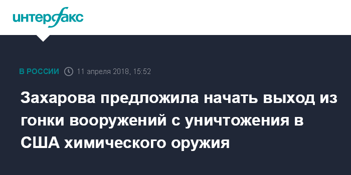 Захарова предложила начать выход из гонки вооружений с уничтожения в США химического оружия