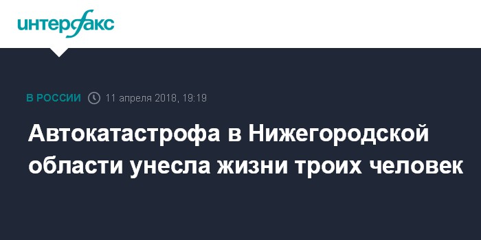 Москва. 11 апреля. INTERFAX.RU - Три человека погибли, еще трое получили травмы в результате ДТП в Нижегородской области в среду вечером, сообщили агентству "Интерфакс" в пресс-службе УГИБДД региона.
