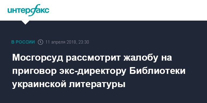 Мосгорсуд рассмотрит жалобу на приговор экс-директору Библиотеки украинской литературы