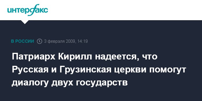 Москва. 3 февраля. INTERFAX.RU - Патриарх Московский и всея Руси Кирилл выразил надежду на то, что церковный диалог поможет наладить взаимоотношения между Россией и Грузией.