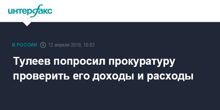 "В связи с этим Тулеев обратился к прокурору Кемеровской области Павлу Бухтоярову с официальной просьбой проверить уровень своих доходов, расходов, состав принадлежащего имущества, и соответствует ли распространяемая в СМИ информация действительности, и дать официальный ответ", - отмечается в сообщении.