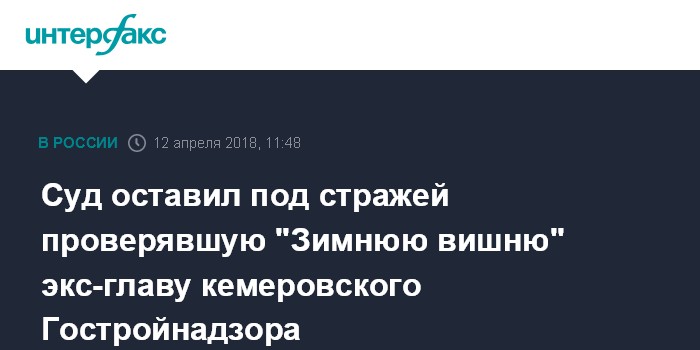 Суд оставил под стражей проверявшую "Зимнюю вишню" экс-главу кемеровского Гостройнадзора