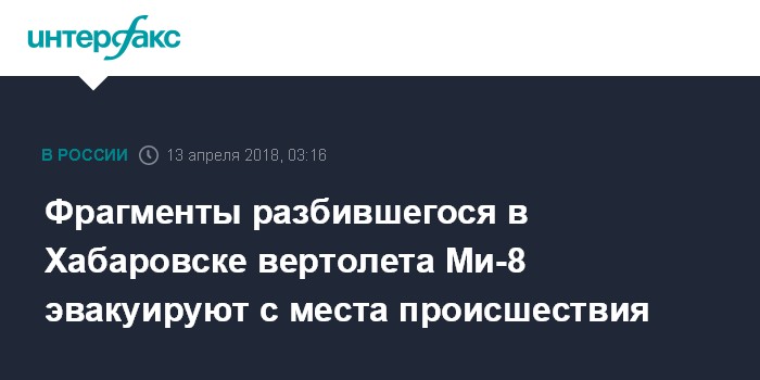 Ми-8 авиакомпании "Восток" разбился в минувшую среду в Хабаровске. Все шесть человек, которые находились на борту, погибли.