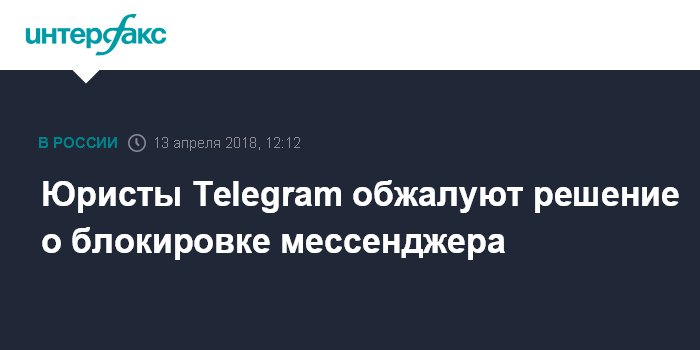 Москва. 13 апреля. INTERFAX.RU - Юристы Telegram обжалуют решение суда о блокировке мессенджера в России, сообщил "Интерфаксу" представитель международной группы "Агора" Дмитрий Колбасин.
