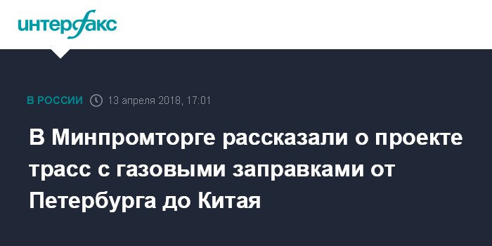 В Минпромторге рассказали о проекте трасс с газовыми заправками от Петербурга до Китая