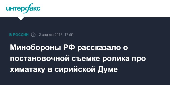 Москва. 13 апреля. INTERFAX.RU - Видеоролик, на основании которого Запад сделал вывод о химической атаке 7 апреля в сирийском городе Дума, был постановкой, это признали снимавшиеся в нем люди, заявил официальный представитель Минобороны России Игорь Конашенков.
