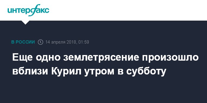 Еще одно землетрясение произошло вблизи Курил утром в субботу