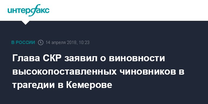 Москва. 14 апреля. INTERFAX.RU - Следствие по делу о гибели десятков людей в пожаре в кемеровском торговом центре усмотрело вину в произошедшем высокопоставленных чиновников, сообщил глава Следственного комитета Александр Бастрыкин.