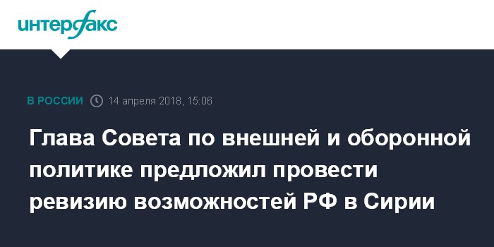 Глава Совета по внешней и оборонной политике предложил провести ревизию возможностей РФ в Сирии