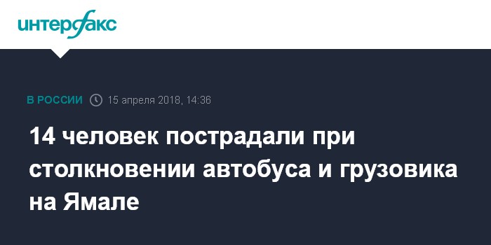 Москва. 15 апреля. INTERFAX.RU - Дорожная авария с участием вахтового автобуса и грузового автомобиля произошла в воскресенье на 77-м км трассы Новый Уренгой - Ямбург в Ямало-Ненецком автономном округе.