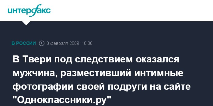 В Твери под следствием оказался мужчина, разместивший интимные фотографии своей подруги на сайте "Одноклассники.ру"