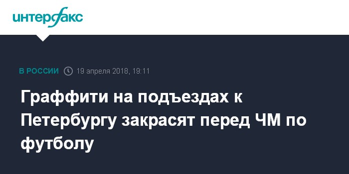 Москва. 19 апреля. INTERFAX.RU - Граффити вдоль железной дороги на подъезде к Петербургу закрасят в преддверии Чемпионата мира по футболу, сообщили в пресс-службе городского комитета по благоустройству в четверг.