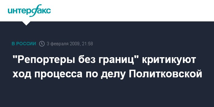 Париж. 3 февраля. INTERFAX.RU - Международная правозащитная организация "Репортеры без границ" во вторник распространили пресс-релиз, в котором подвергла критике ход процесса по делу об убийстве российской журналистки Анны Политковской.