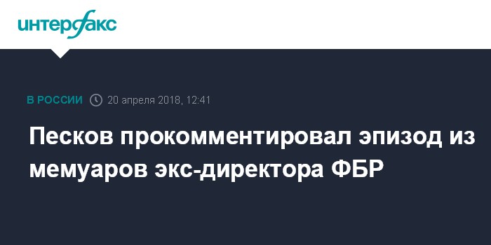 В ходе разговора с пресс-секретарем президента РФ один из журналистов задал вопрос, читали ли в Кремле мемуары бывшего директора ФБР Джеймса Коми.