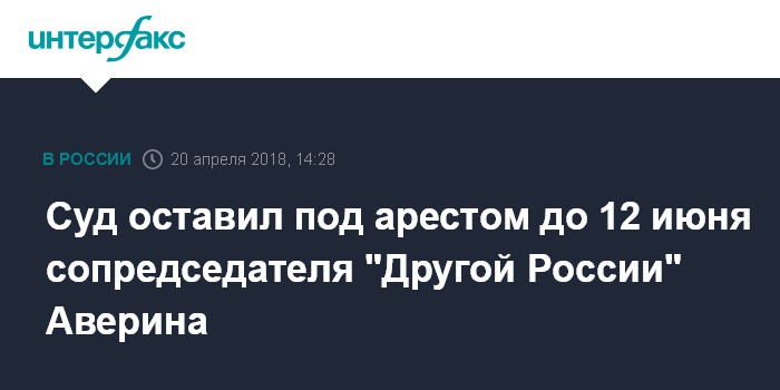 Суд оставил под арестом до 12 июня сопредседателя "Другой России" Аверина