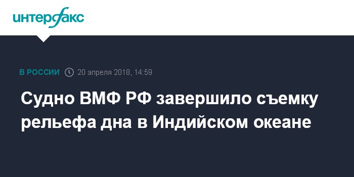 Судно ВМФ РФ завершило съемку рельефа дна в Индийском океане