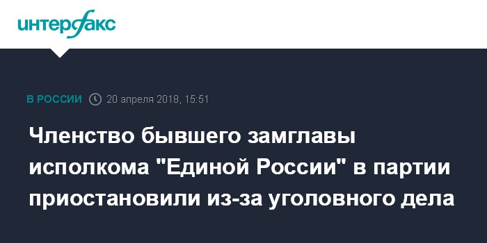 Членство бывшего замглавы исполкома "Единой России" в партии приостановили из-за уголовного дела