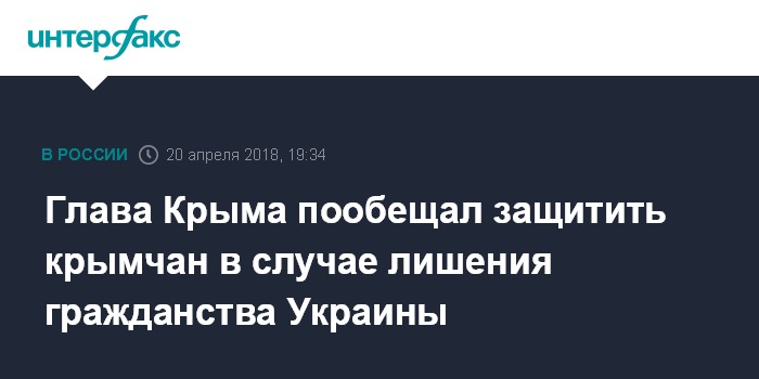 Президент Украины Петр Порошенко 19 апреля предложил Верховной раде предусмотреть в качестве основания для утраты украинского гражданства приобретение гражданства Российской Федерации на территории Крыма.