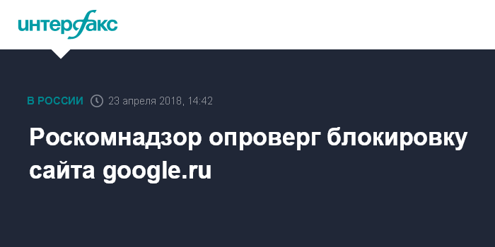 Москва. 23 апреля. INTERFAX.RU - Роскомнадзор сообщил, что информация о блокировке страницы Google.ru не соответствует действительности, а проблемы с доступом к ней могут быть у небольшого числа мелких операторов.