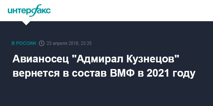 "Мы работу (по ремонту "Адмирала Кузнецова" - ИФ) уже начали. Мы рассчитываем закончить всю нашу работу к концу 2020 года, в первом полугодии 2021 провести испытания и, соответственно, передать корабль флоту уже в боеспособном состоянии", - заявил Рахманов в понедельник в эфире радиостанции "Эхо Москвы".