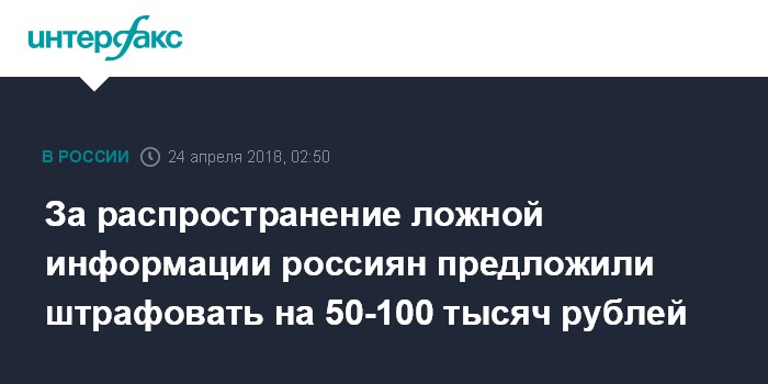 За распространение ложной информации россиян предложили штрафовать на 50-100 тысяч рублей