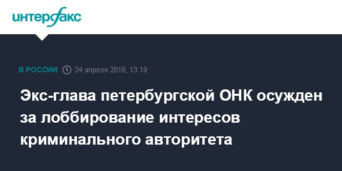 Экс-глава петербургской ОНК осужден за лоббирование интересов криминального авторитета