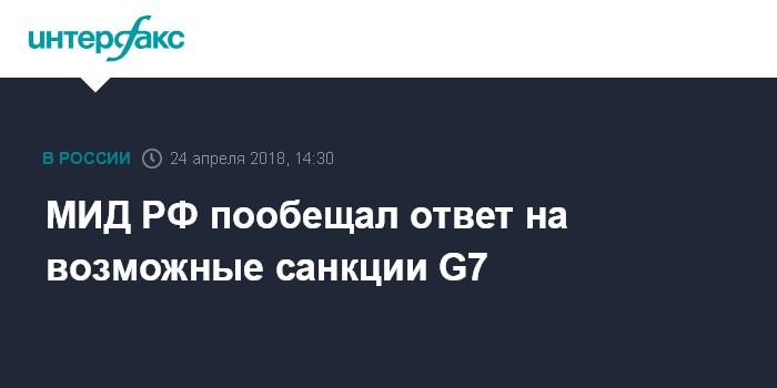 Москва. 24 апреля. INTERFAX.RU - Москва не боится возможных санкций со стороны государств "группы семи" и своевременно даст на них ответ, заявил во вторник замглавы МИД РФ Сергей Рябков.