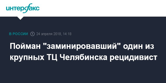 Пойман "заминировавший" один из крупных ТЦ Челябинска рецидивист