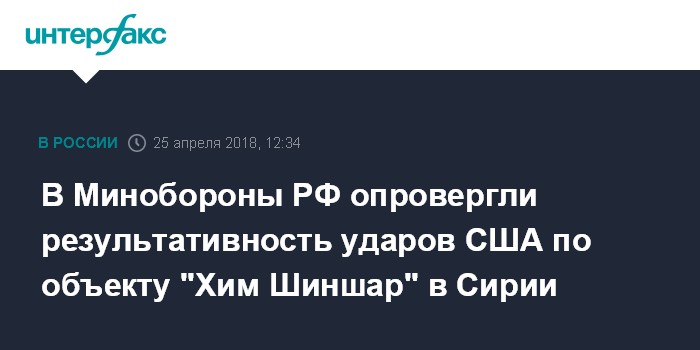 "Теперь о результатах работы на объекте "Хим Шиншар", где по американской версии якобы хранилось химическое оружие. По утверждению представителей Пентагона, в наземные сооружения попало 22 ракеты. Нами зафиксировано не более семи попаданий, что отражено на космическом снимке", - сказал Рудской.